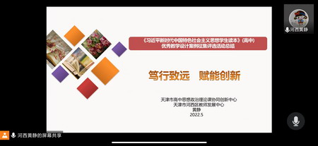 会议伊始,河西区教师发展中心高中思想政治教研员、天津市高中思想政治理论课协同创新中心秘书长黄静对《习近平新时代中国特色社会主义思想员工读本》(高中)优秀教学设计案例评选活动进行了总结。